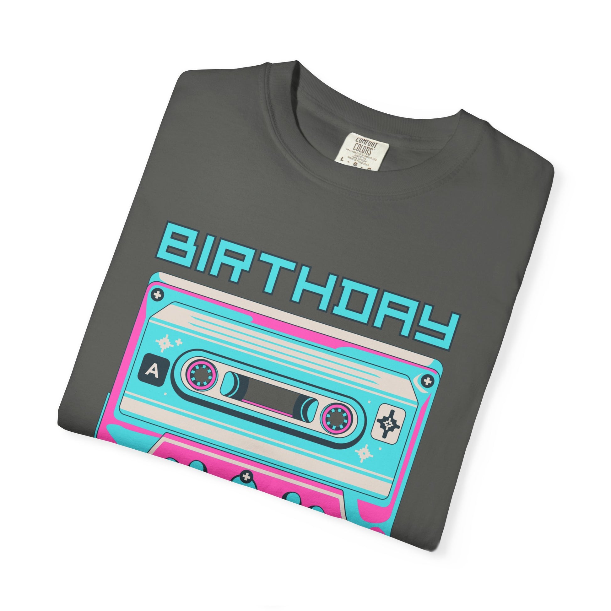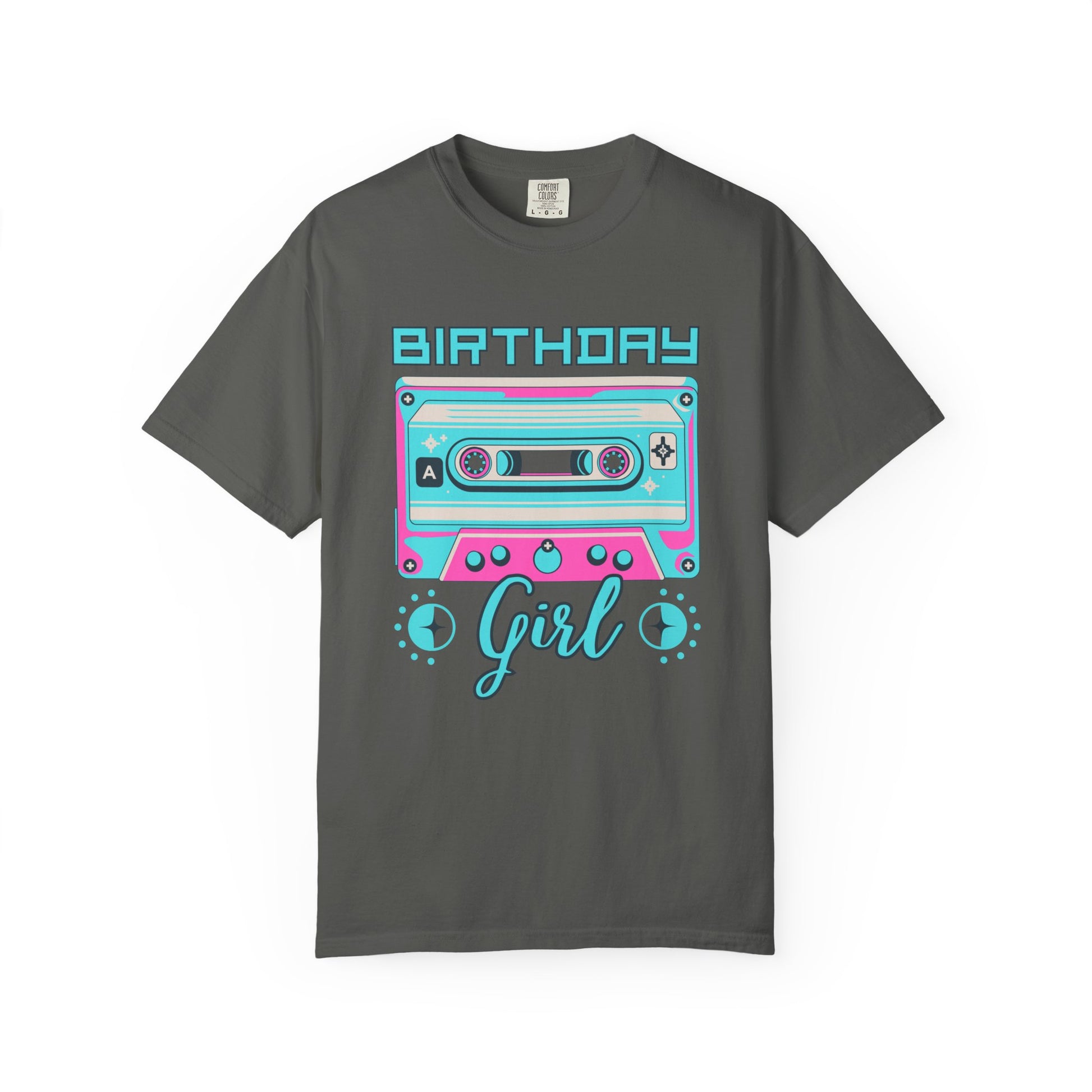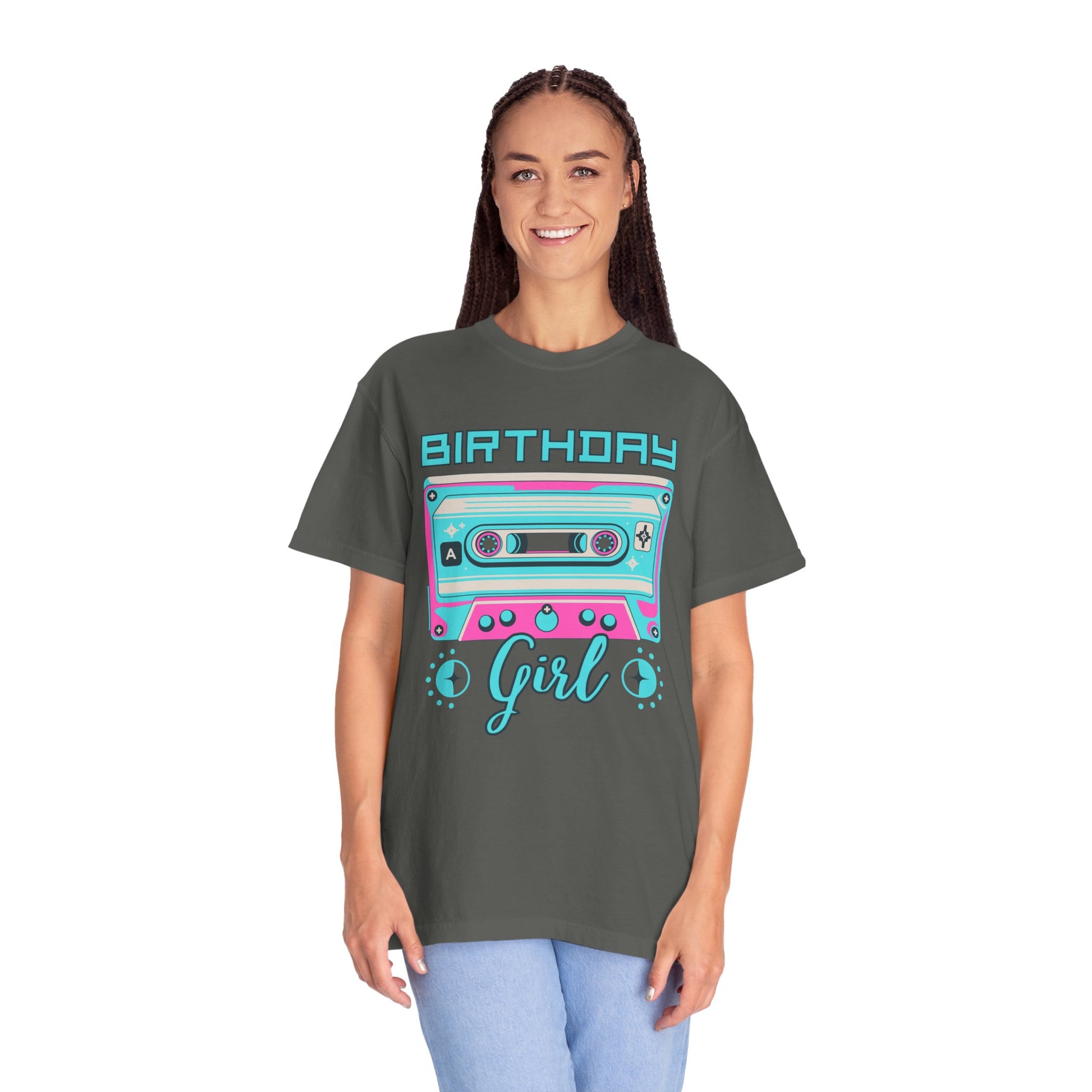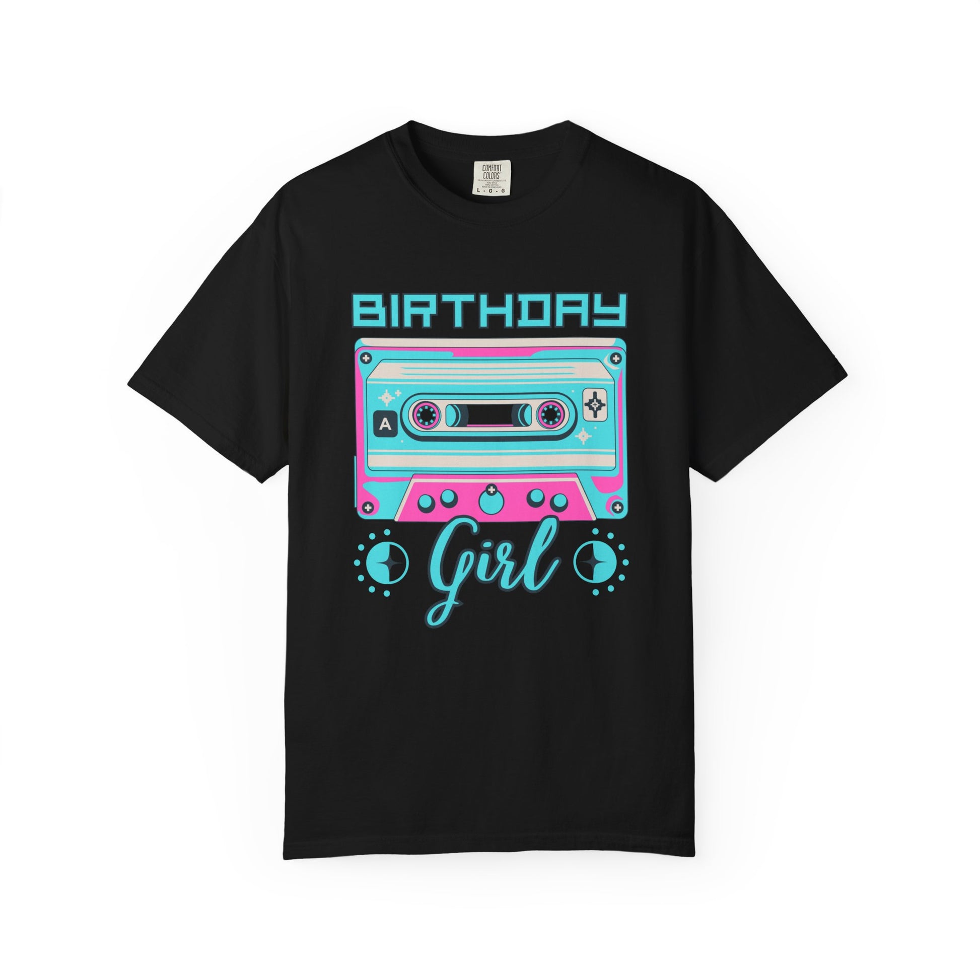 This relaxed, garment-dyed tee brings retro mixtape vibes to a modern birthday celebration. A vibrant cassette graphic in neon turquoise and bubblegum pink sits front-and-center above a flowing “Girl” script, creating a playful, nostalgic look that feels lived-in from the first wear. The soft, post-dyed cotton has a slightly faded, vintage finish that pairs effortlessly with denim or a cozy cardigan. Lightweight yet substantial, it moves easily through an evening of candles, confetti, and music — an easy pick for anyone who wants bold color and relaxed comfort on their birthday night.