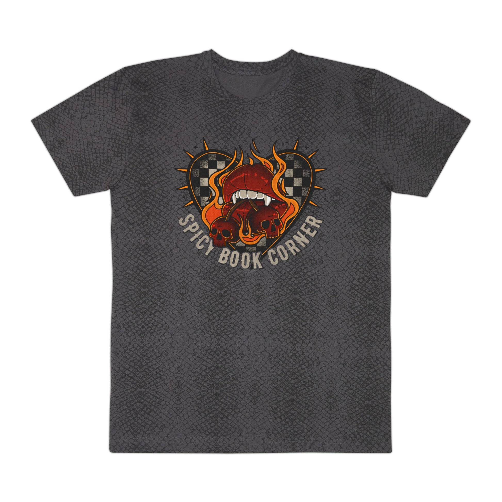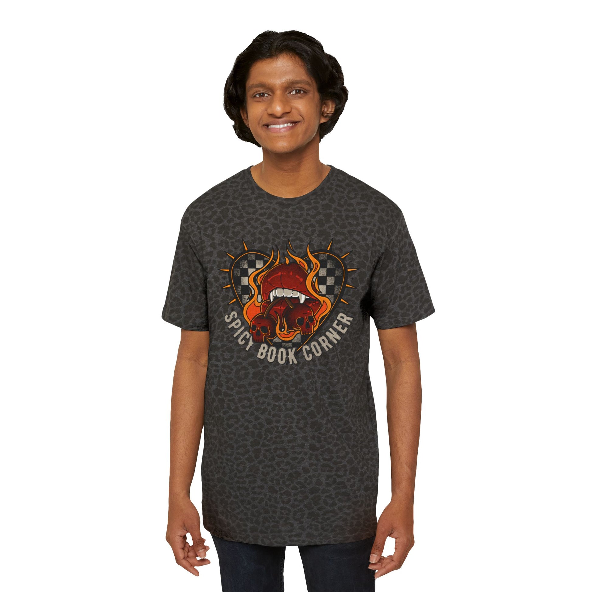 This tee brings a bit of rebellion to quiet reading corners. Soft, lightweight fabric drapes easily over the shoulders while a bold, vintage-inspired graphic—flaming skull with an open mouth and the words "Spicy Book Corner"—claims its spot on the chest. The dark, subtle leopard background gives the shirt an edgy, lived-in look that pairs with worn jeans, cardigans, or a favorite flannel. It feels like the kind of shirt you reach for when you want to read late into the night with a mug at hand and music low, or when you’re heading out to a small, indie bookshop event and want to stand out without shouting. Built with attentive stitching and a tear-away label, it moves with you and keeps its shape through washes so the art stays sharp and the fit stays comfortable.
